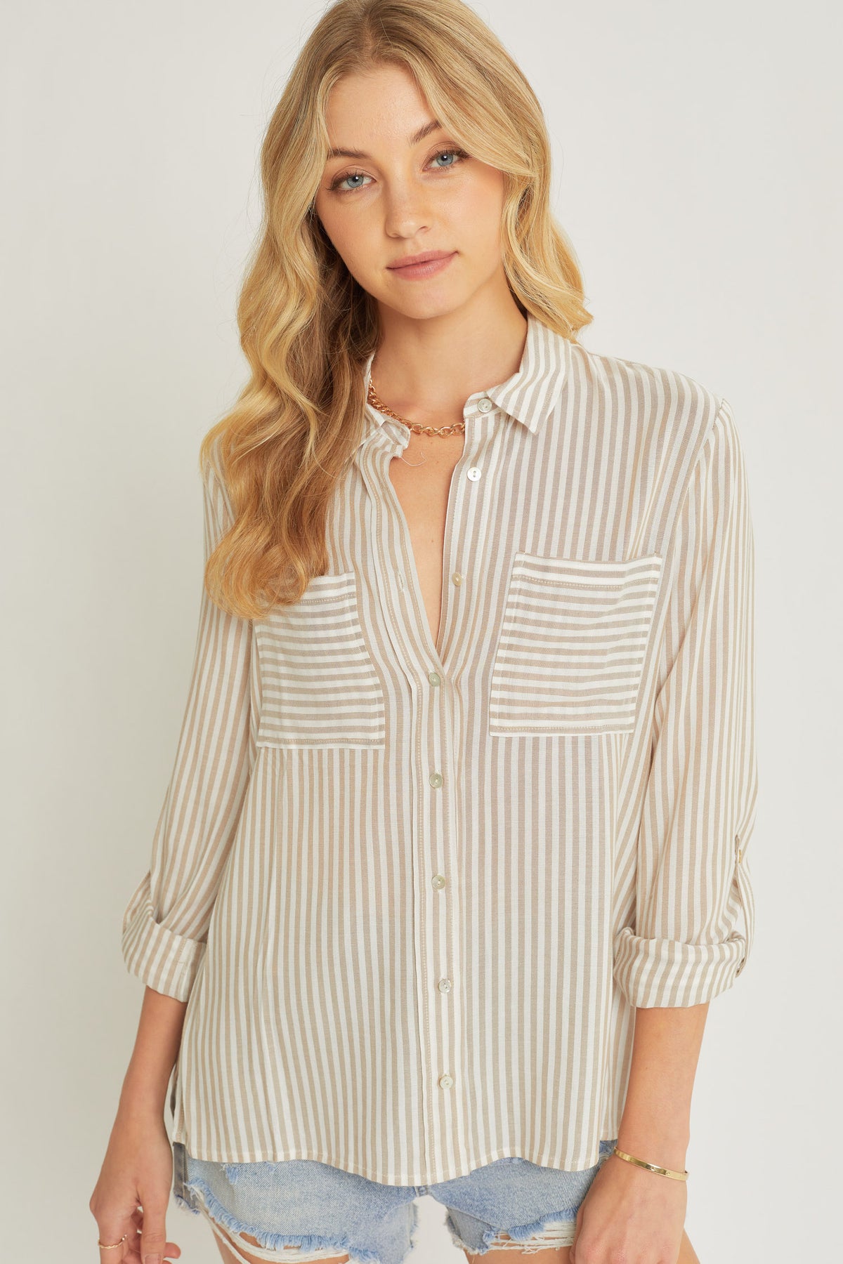 Esta blusa de rayas verticales está diseñada para quienes buscan frescura sin perder la elegancia. Su tejido ligero y su corte fluido la convierten en la opción perfecta para combinar con tus jeans favoritos.