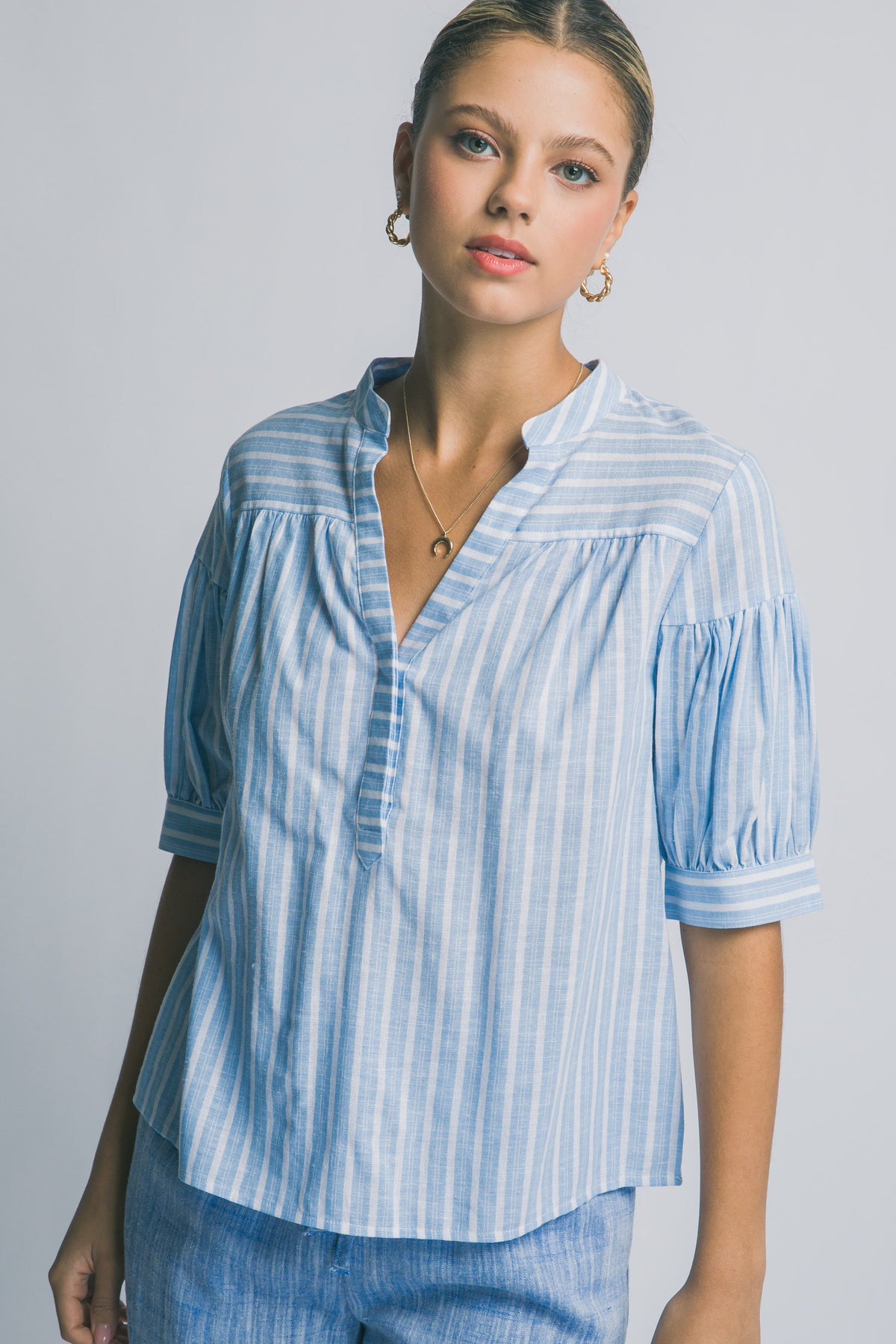 Esta blusa de rayas es la definición del estilo relajado pero sofisticado.