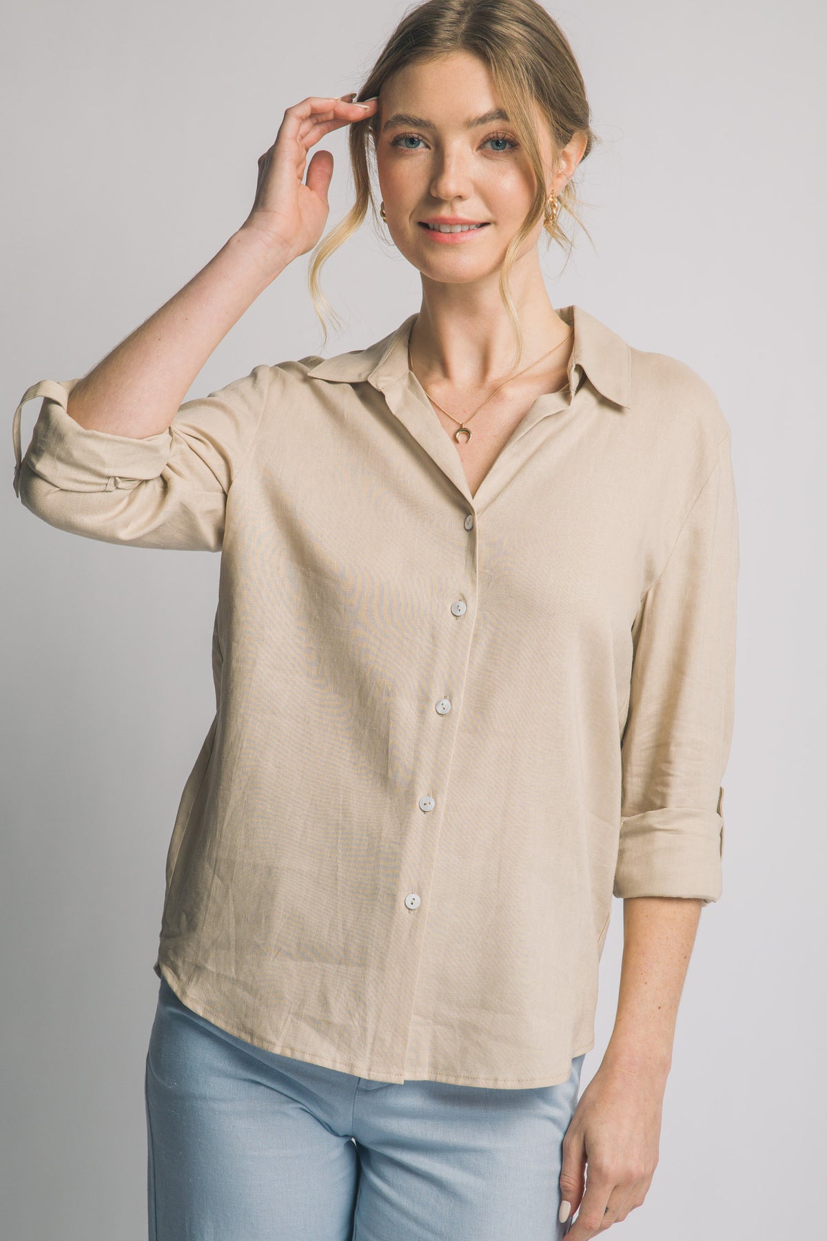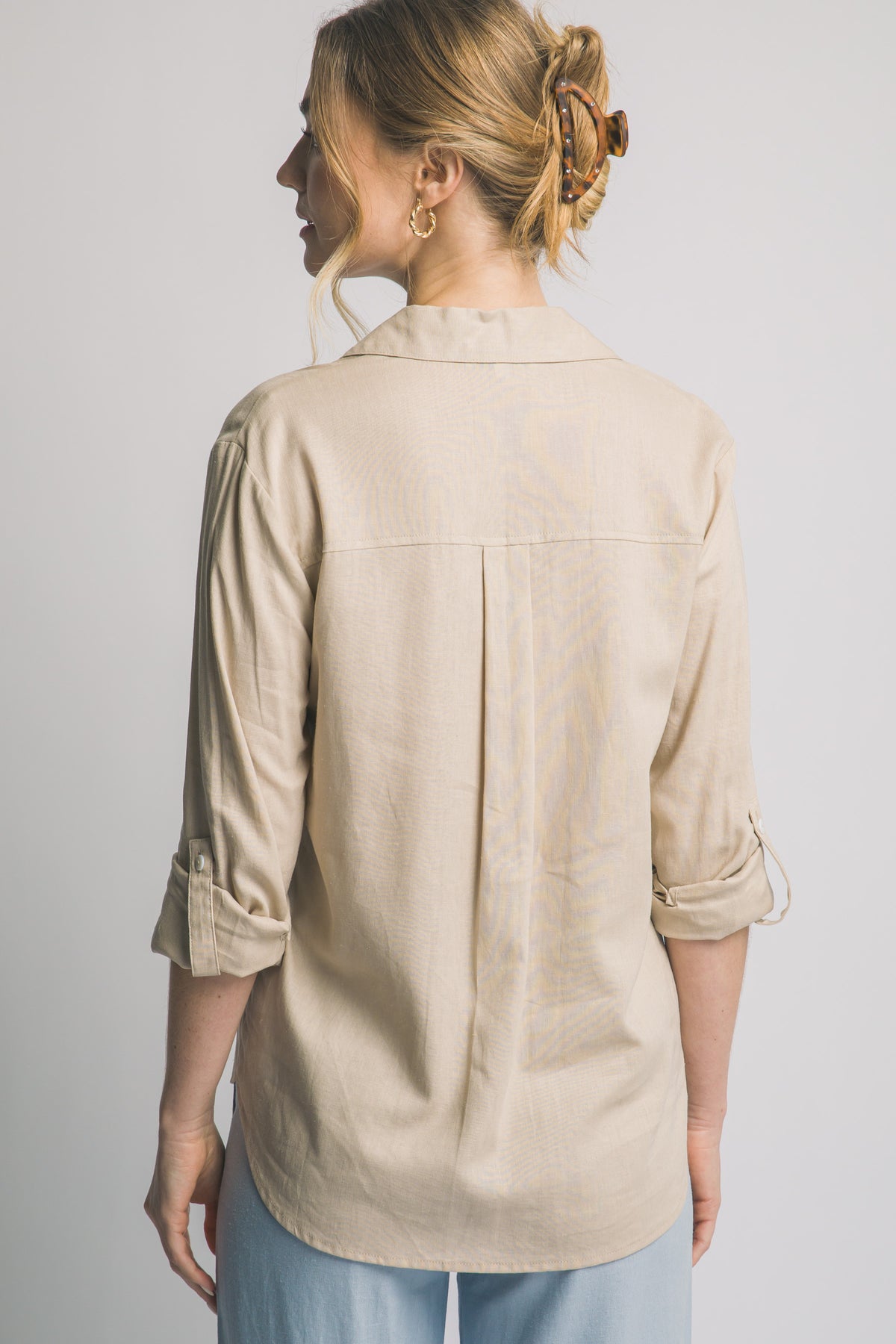Material de Primera: Confeccionada en una mezcla de lino ligera y suave al tacto, ideal para mantener la frescura en días cálidos.