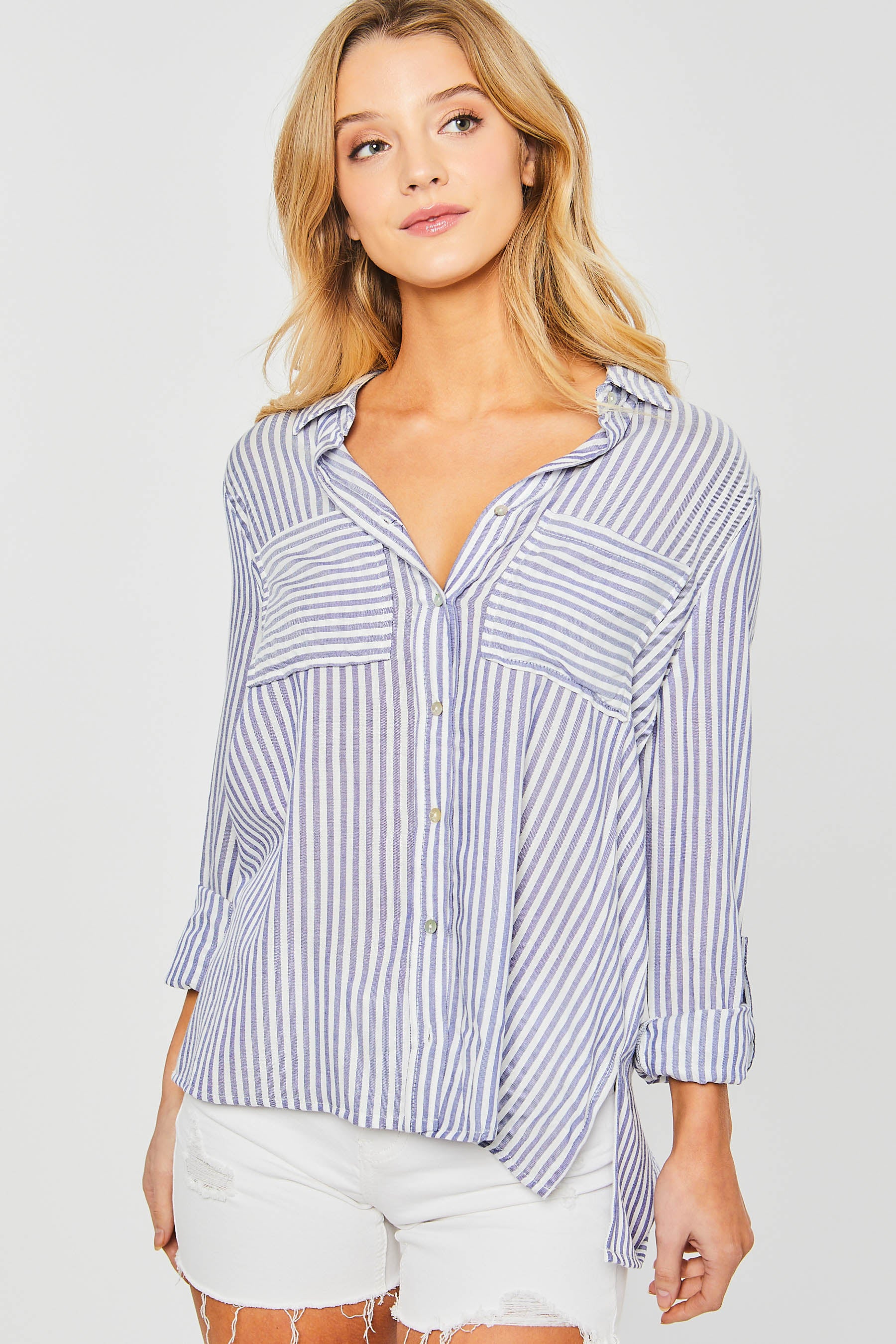 Esta blusa de rayas verticales está diseñada para ofrecer una sensación de ligereza absoluta. Su tejido suave y semitransparente la convierte en la prenda ideal para lograr un look impecable y fresco, ya sea en la ciudad o en una escapada a la costa.