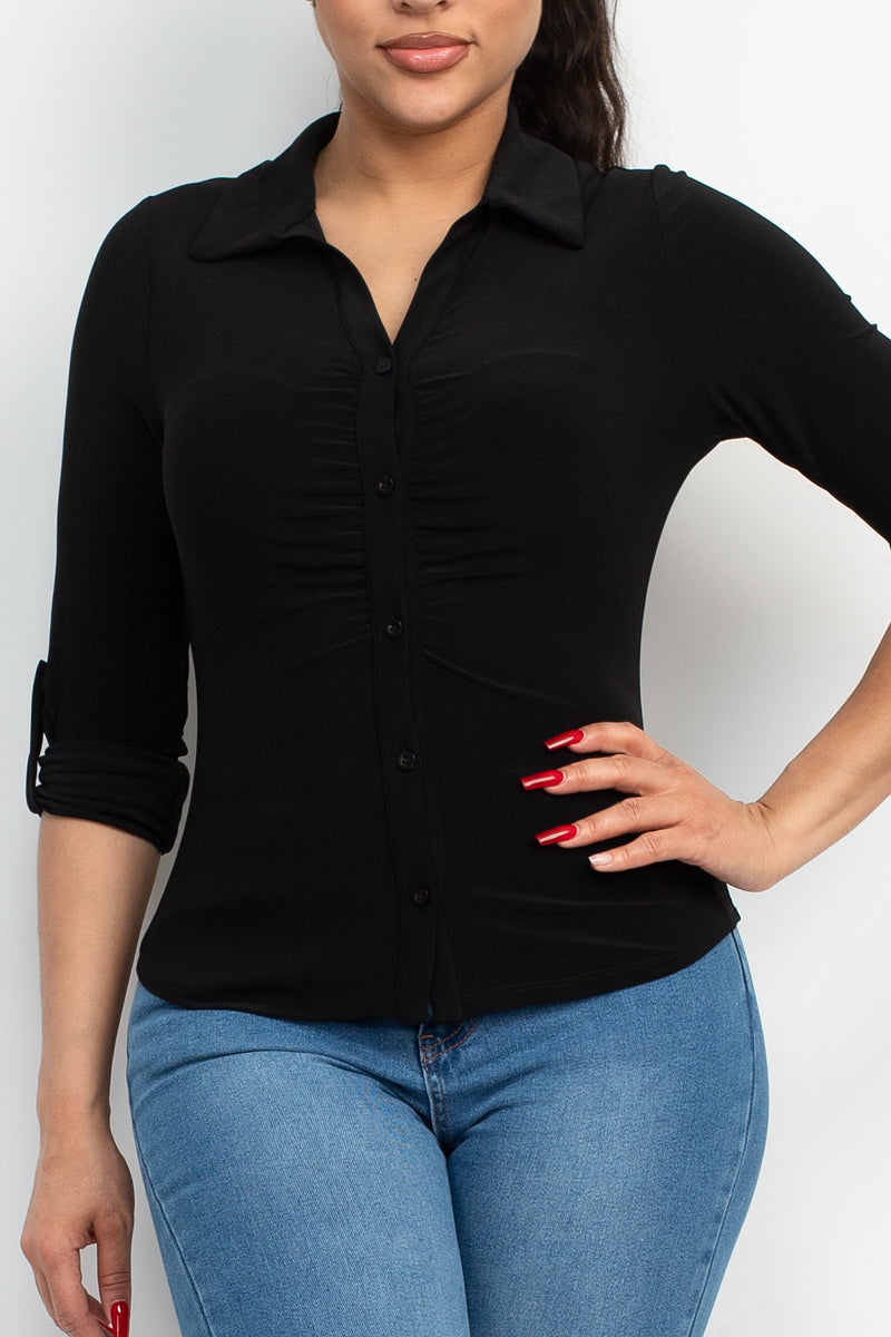 Blusa Button Down sin mangas con cuello elegante y botones enfrente