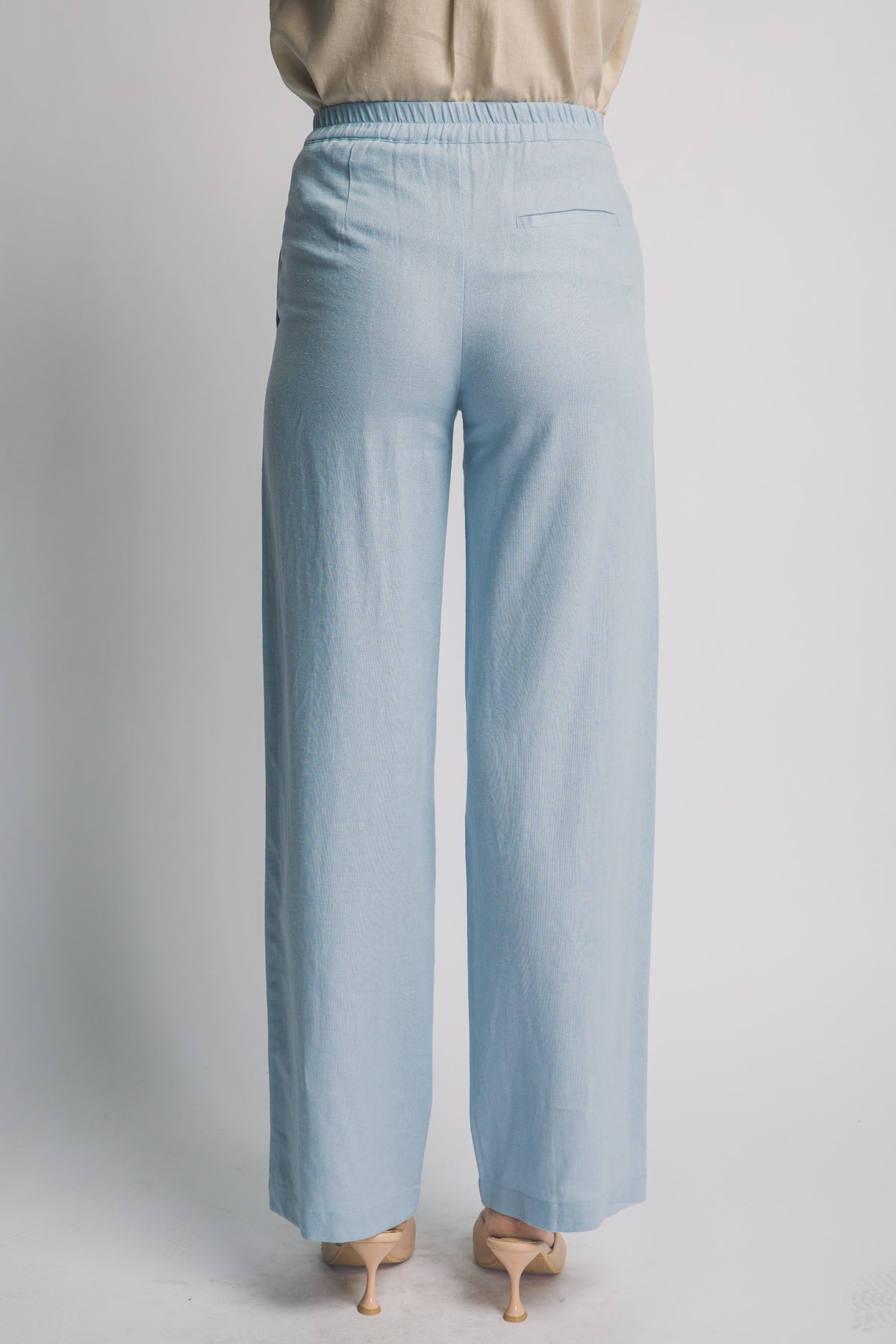 Tejido en Mezcla de Lino: Su textura de apariencia natural garantiza una transpirabilidad superior, ideal para mantenerse fresca en días calurosos.